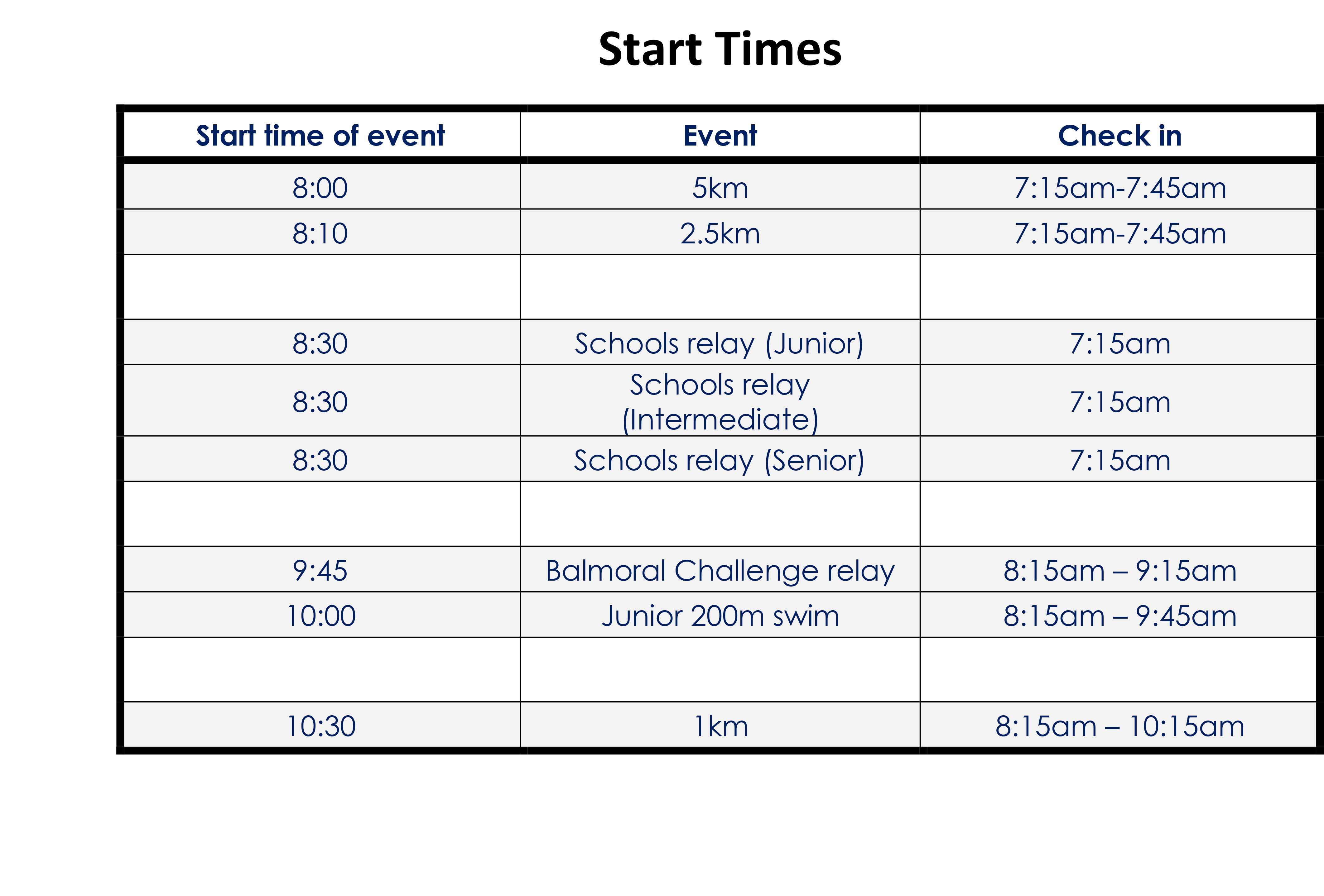 The plan for Sunday 22nd March 2026. The times for the individual waves for each event may change depending on numbers so make sure you are there for the scheduled start of each event.